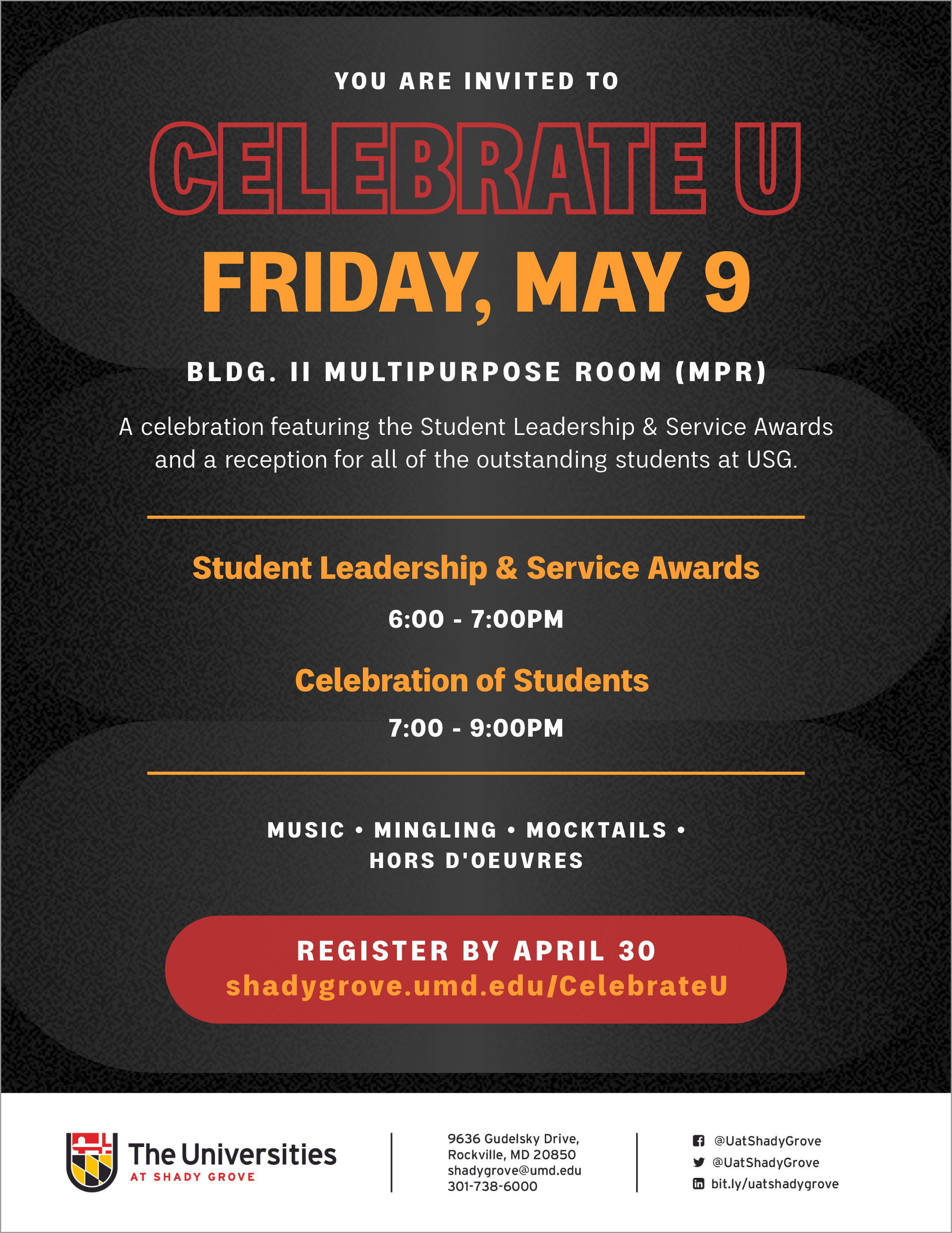 Faculty and staff from across USG are excited to celebrate the accomplishments of all students from this academic year, especially this year's graduates, and to offer well wishes to you as you head off to your next venture - new career, job promotions, graduate school, entrepreneurship, etc. We hope you are able to join us for music, mocktails, hors d'oeuvres, photo booth fun, and more!