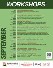 Covers functions & formatting, plus pivot tables to analyze and present your data. Please register for the workshop by 9:00 am on the day of the workshop to ensure you receive a Zoom link, if attending virtually. For the complete fall 2024 workshop schedule, click on the image.