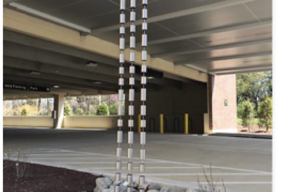 The Rain Water Capture system in the parking garage collects rainwater and stores it for us to use on our landscaping.