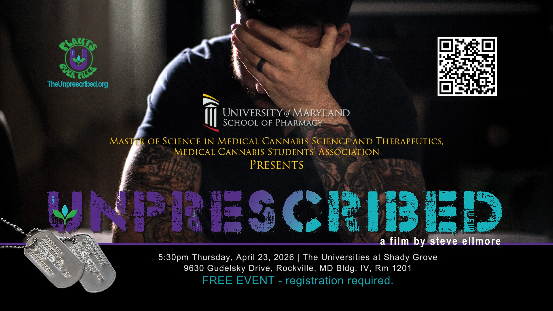 The University of Maryland School of Pharmacy’s (UMSOP) Medical Cannabis Student Association is excited to host a screening of the documentary Unprescribed.