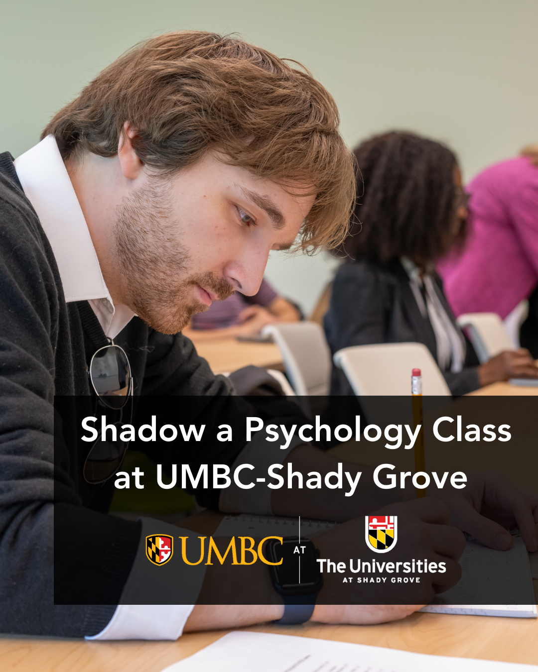 Shadow a class to learn exactly what to expect from your time as a student at UMBC-Shady Grove. You’ll fit right in with our psychology B.A. students during one (or more) real lectures from Dr. Diane Alonso.