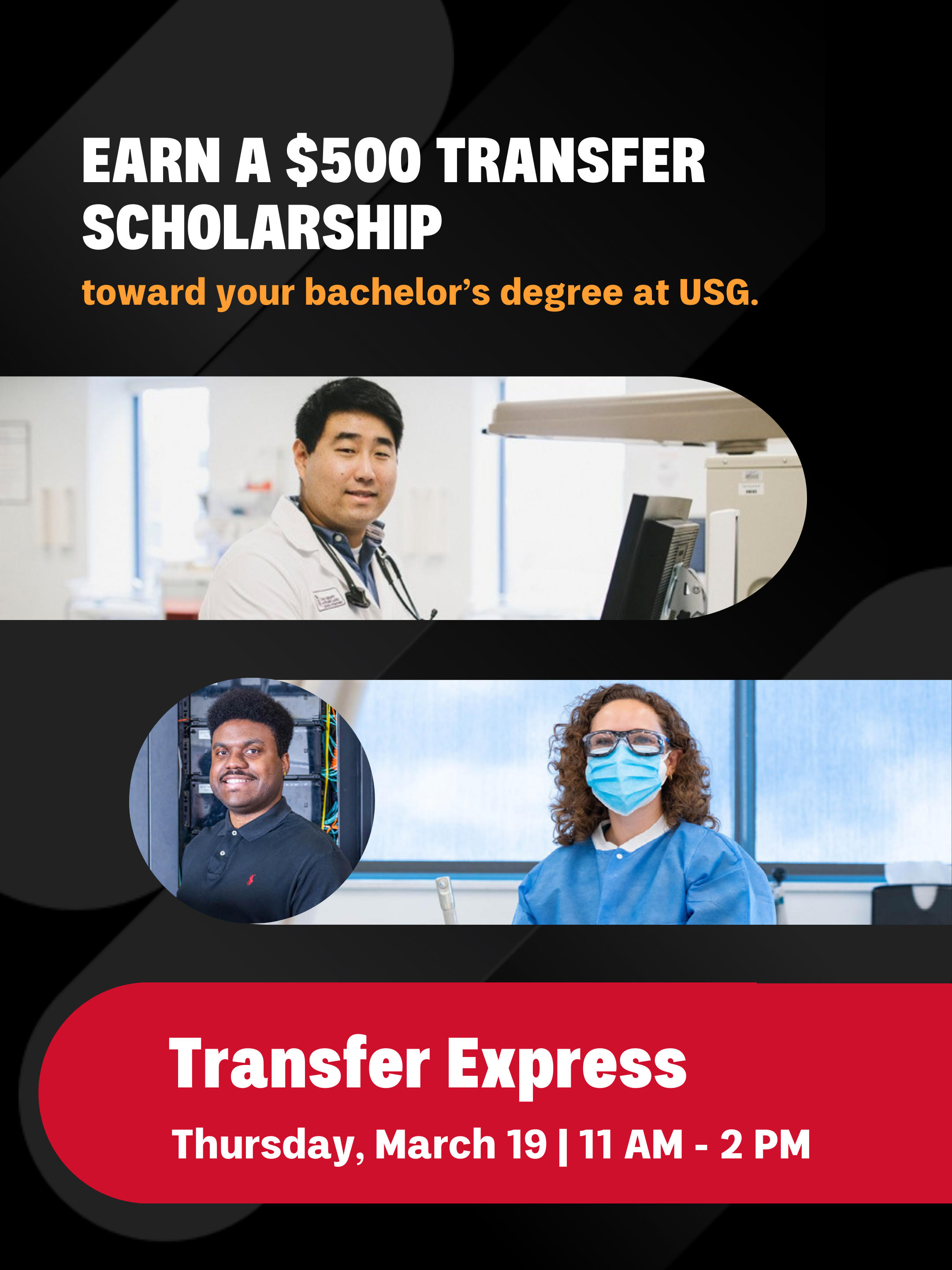 Are you thinking about the next steps in your academic journey? Find out why USG is the best campus to transfer to in order to complete your bachelor’s degree by attending our upcoming Transfer Express Event.