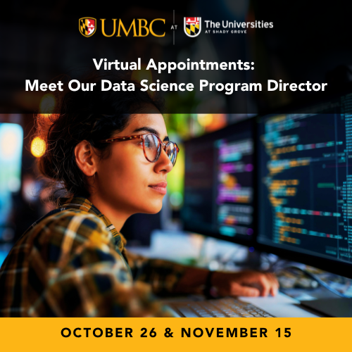 Join us for a unique opportunity to meet virtually with Graduate Program Director Dr. Ali Yousuf and discuss your future in Data Science at UMBC-Shady Grove. In a 15-minute one-on-one appointment, you'll gain insights into our program and receive personalized guidance tailored to your academic and professional goals.