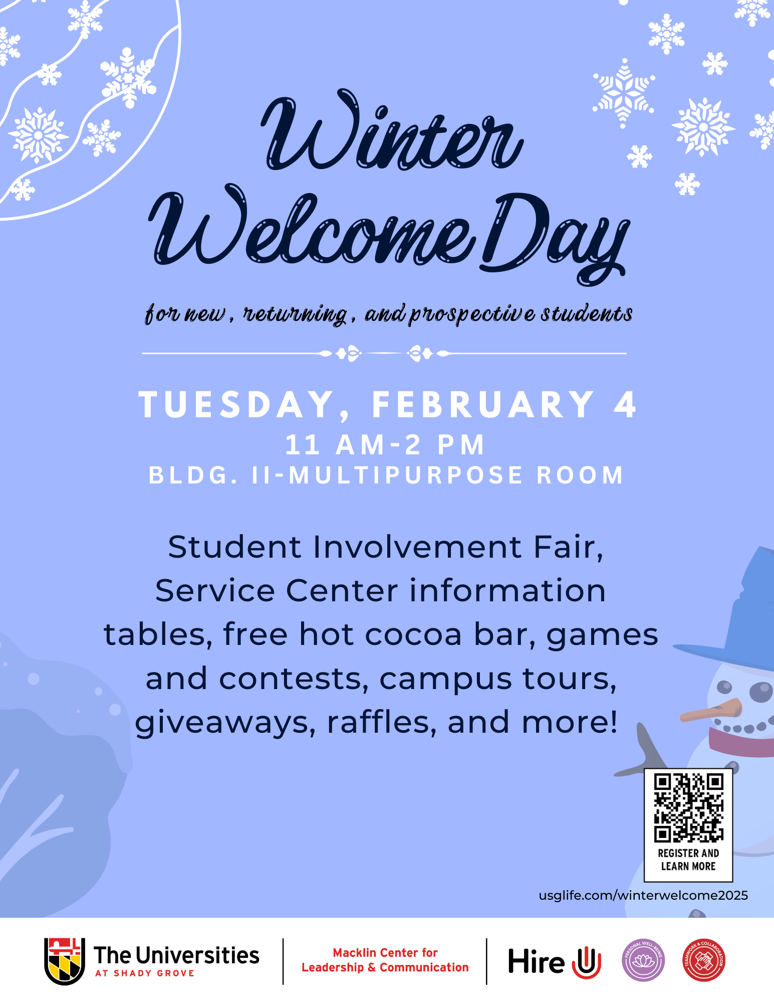 Student Involvement Fair, Service Center information tables, free hot cocoa bar, games and contests, campus tours, giveaways, raffles, and more! For new, returning, and prospective students.