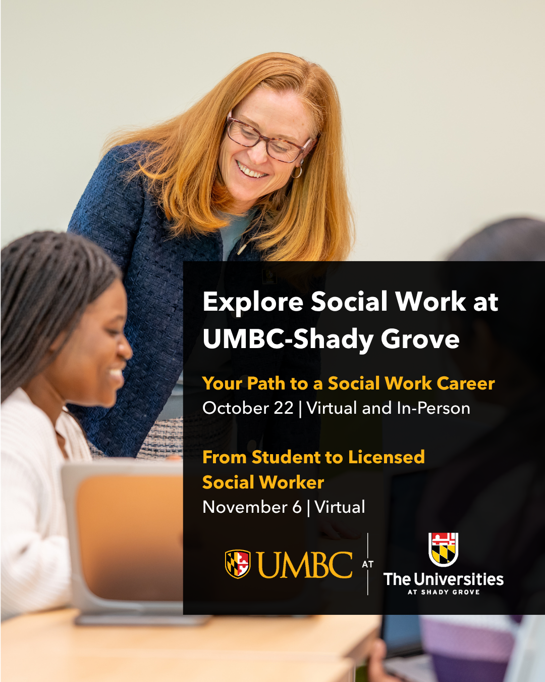 Explore your path in social work with UMBC-Shady Grove! Join Dr. Katie Morris, LCSW-C, and current students to learn how our undergraduate program can help you achieve the career you want. Discover how our classes and field placements teach you to apply your knowledge and get practical tips on how to balance work and school.